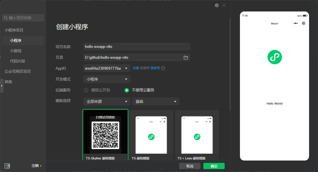 使用 JS 基础模板创建的项目,依然可以使用